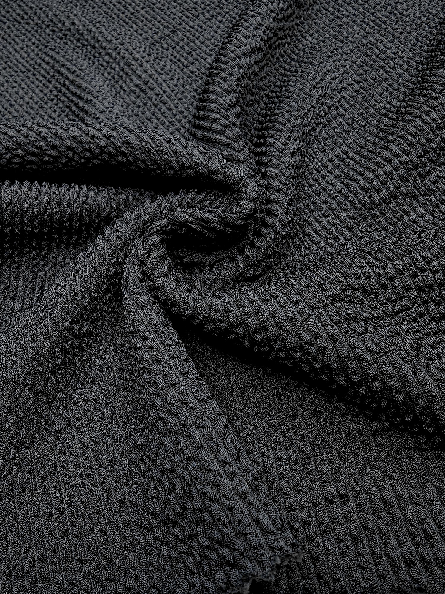 Суплекс-резинка – це щільна, м’яка і приємна на дотик тканина. Лицьова частина фактурна, виворітна з ледь помітним начосом. За рахунок великого відсотка спандексу, дуже добре тягнеться в усі сторони.